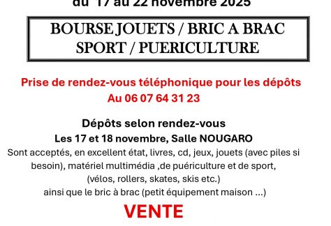 BOURSE JOUETS / BRIC A BRAC / SPORT / PUERICULTURE
