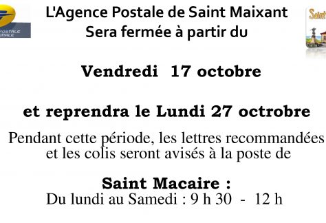 FERMETURE DE L’AGENCE POSTALE COMMUNALE
