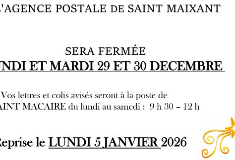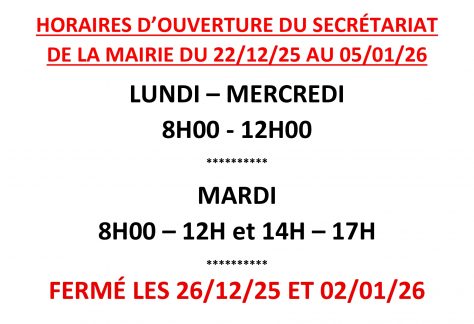 HORAIRES DU SECRÉTARIAT DE LA MAIRIE DU 22/12/25 AU 05/01/26