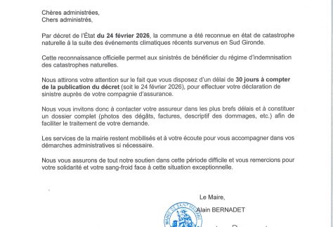 RECONNAISSANCE DE L’ETAT DE CATASTROPHE NATURELLE