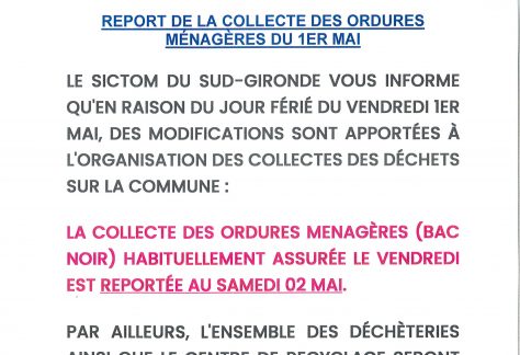 REPORT DE LA COLLECTE DES ORDURES MÉNAGÈRES DU 1ER MAI