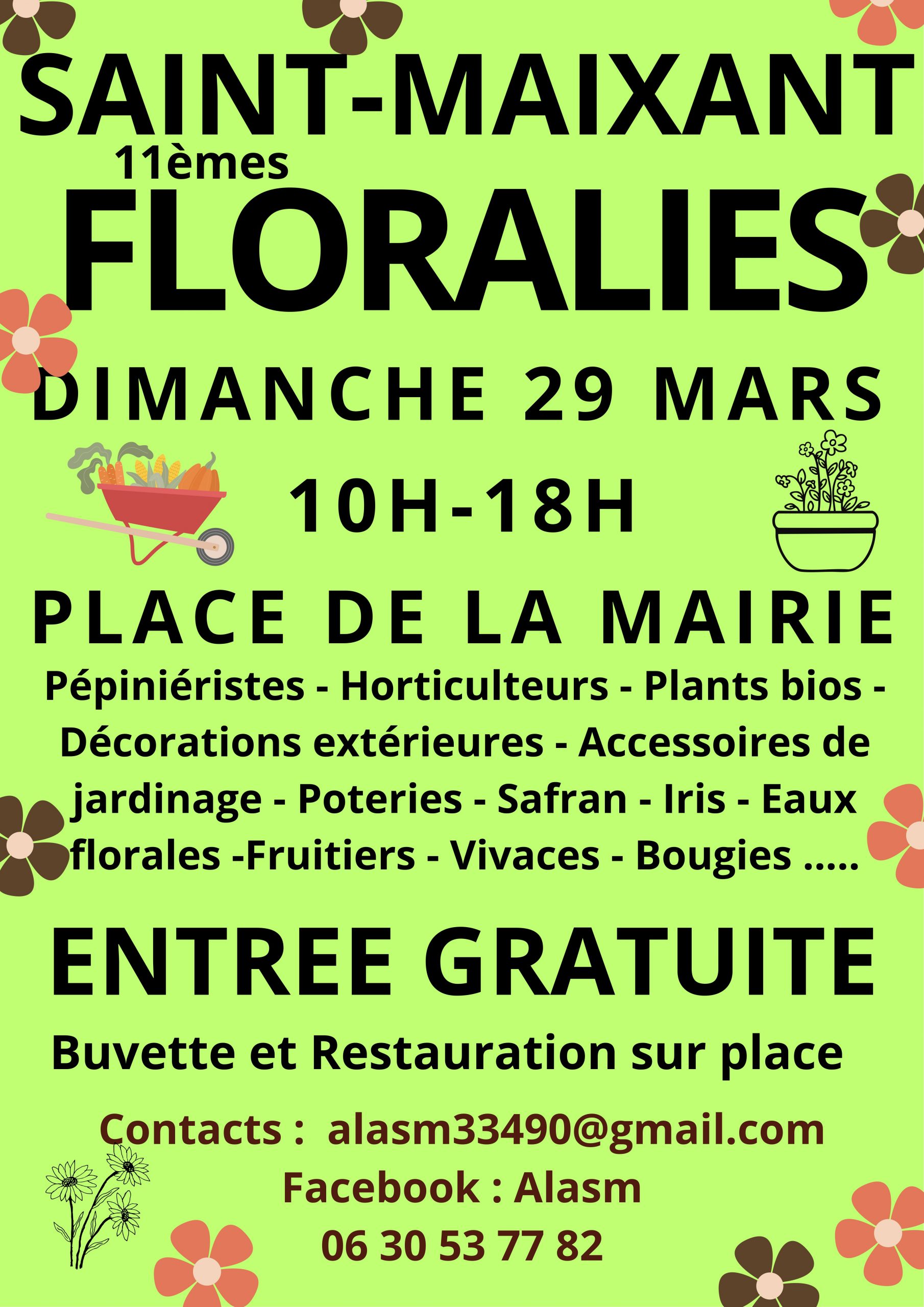 11EMES FLORALIES VOIR L’AFFICHE + Ajouter à mon Agenda Google + iCal / Outlook export 00 jours 00 heures 00 minutes 00 secondes Date Mar 29 2026 Heure 10h00 - 18h00 Partagez cet événement