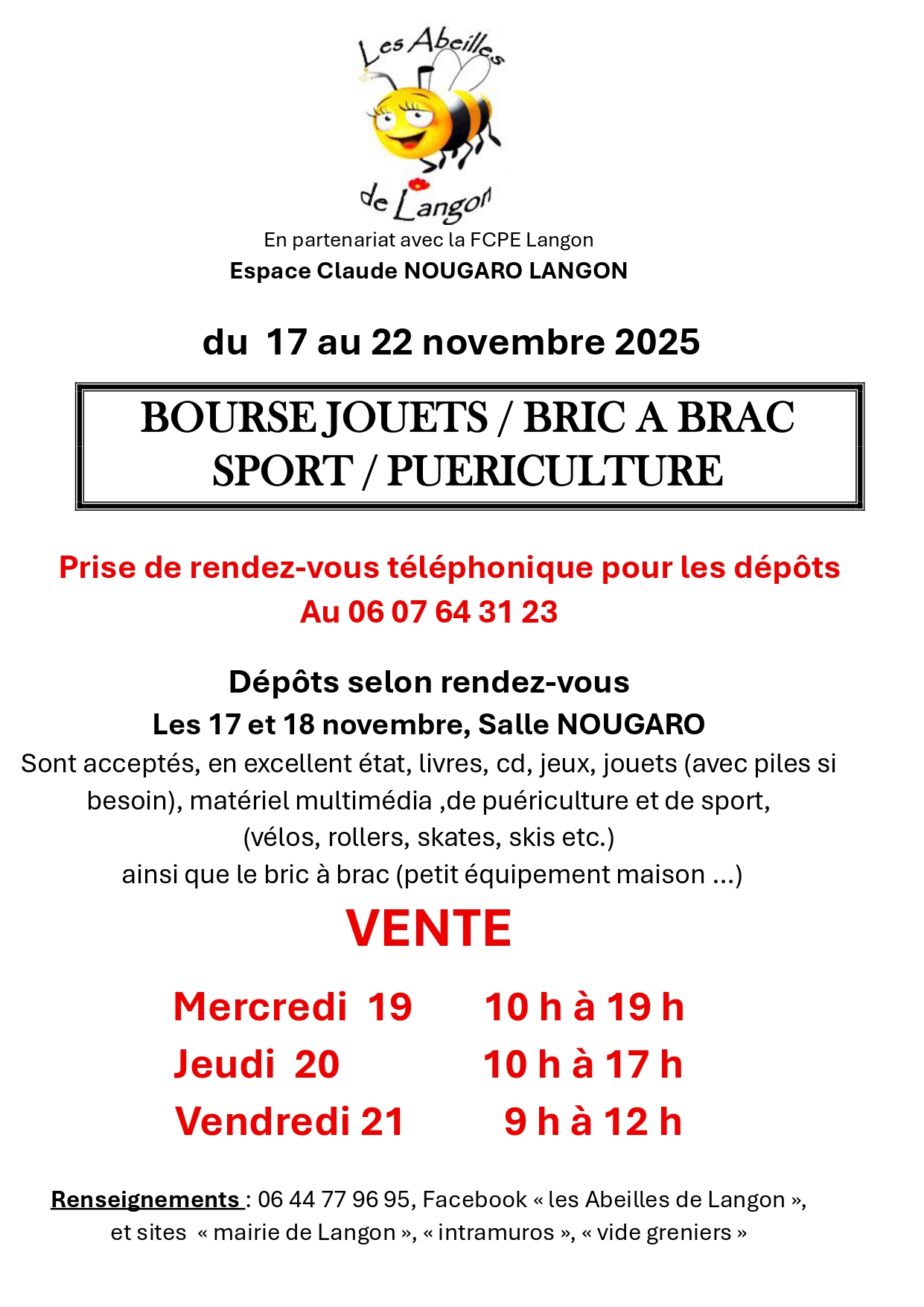 BOURSE JOUETS / BRIC A BRAC / SPORT / PUERICULTURE