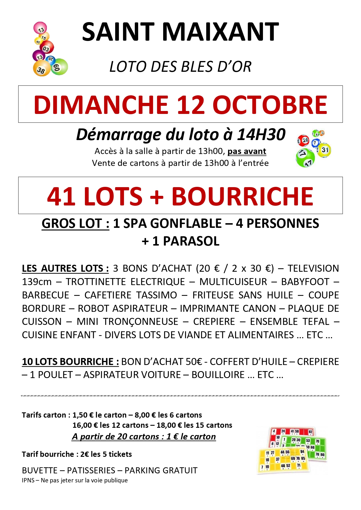 LOTO DES BLÉS D’OR VOIR L’AFFICHE + Ajouter à mon Agenda Google + iCal / Outlook export Date Oct 12 2025 Expiré! Partagez cet événement