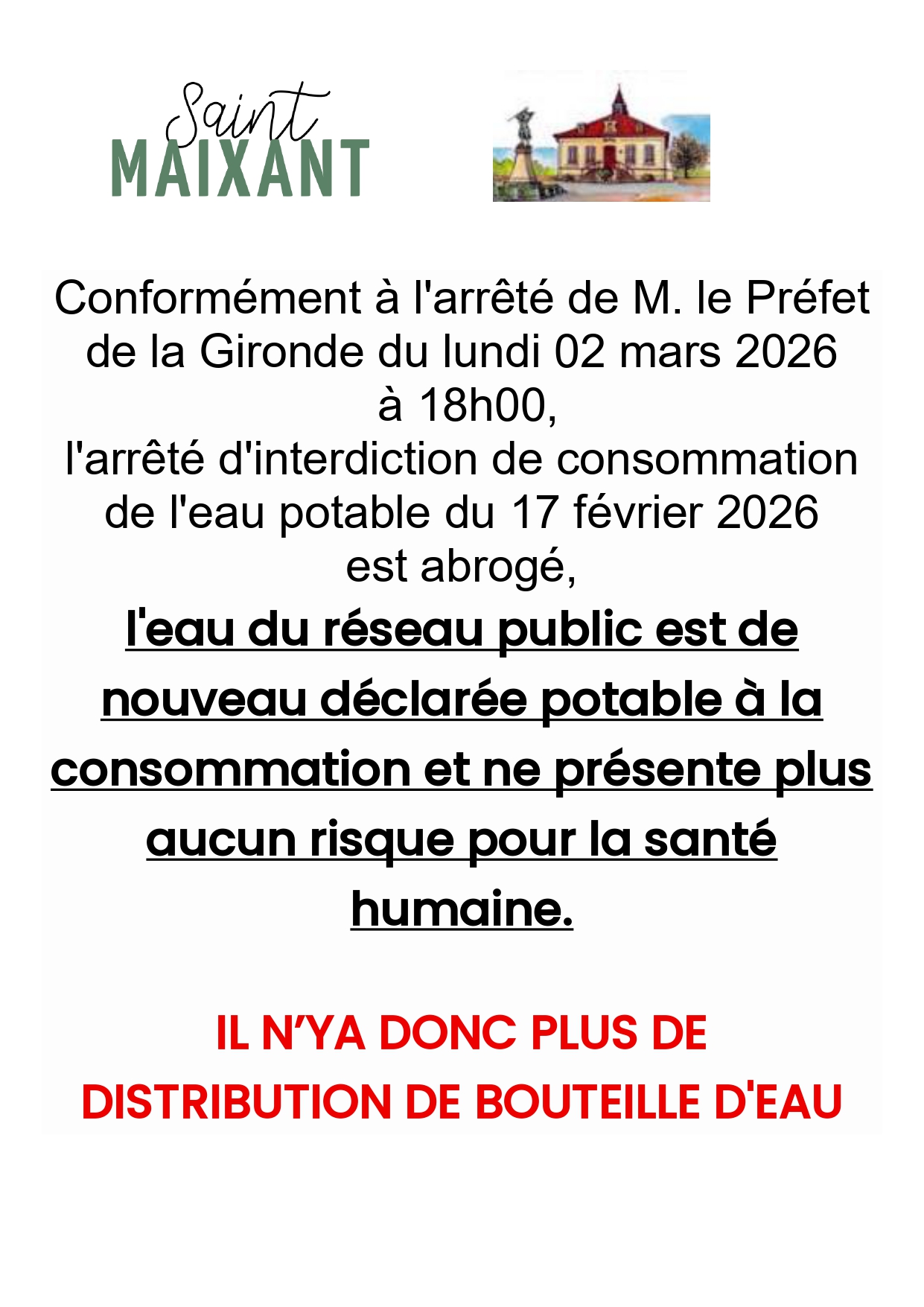 EAU POTABLE – RETOUR A LA NORMALE VOIR L’AFFICHE + Ajouter à mon Agenda Google + iCal / Outlook export Date Mar 03 - 11 2026 Expiré! Partagez cet événement