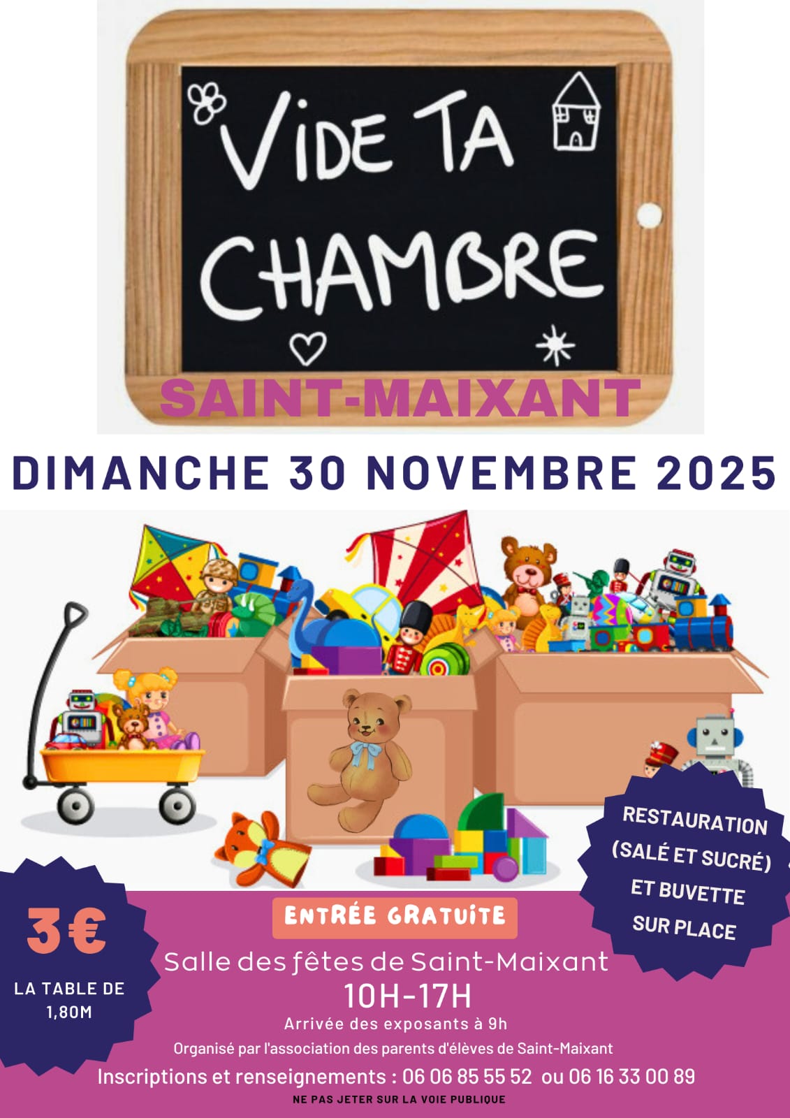 VIDE TA CHAMBRE!! VOIR L’AFFICHE + Ajouter à mon Agenda Google + iCal / Outlook export 00 jours 00 heures 00 minutes 00 secondes Date Nov 30 2025 Heure 10h00 - 17h00 Partagez cet événement